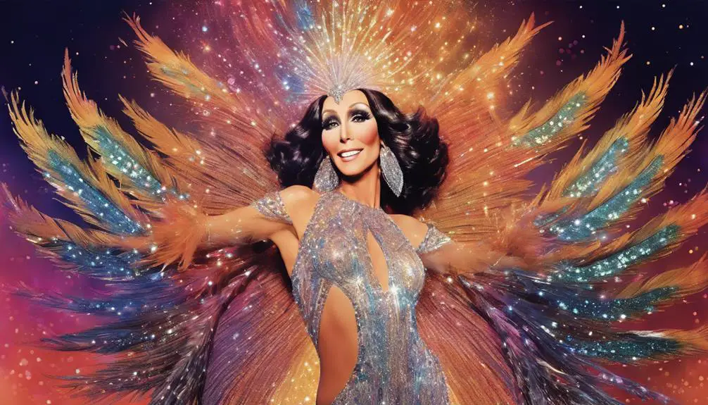 You can't deny Cher's a fashion icon! Her bold outfits scream timeless elegance, showcasing her cultural impact. With iconic collaborations, she's transformed fashion evolution, influencing trends and inspiring countless artists through the decades.