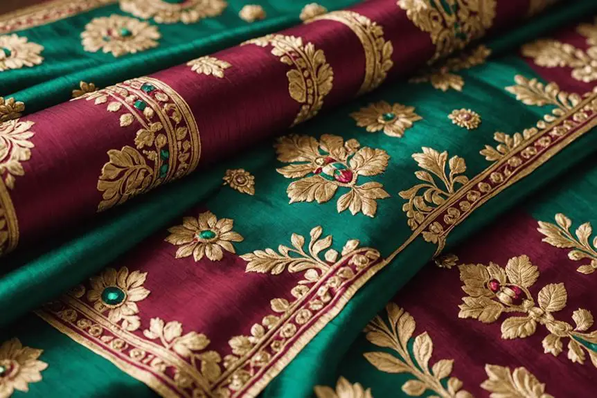 When you think of luxurious fabrics, Banarasi silk stands out with its unique characteristics that set it apart from others. This fabric hails from Varanasi, India, and it's famous for its rich sheen and soft texture. You'll love how it feels against your skin! Authentic Banarasi silk is handwoven using genuine silk threads, and it often showcases intricate designs inspired by Mughal artistry. Imagine florals and geometric patterns dancing across the fabric, telling a story of culture and history.