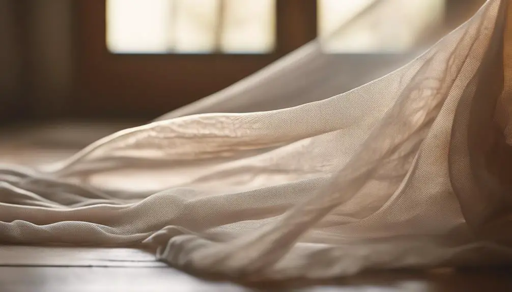To identify voile fabric, look for its lightweight and semi-sheer qualities. Voile often has a soft, silky texture and a smooth finish due to its high thread count. It's typically made from 100% cotton but can also come in silk, polyester, and rayon varieties. When you hold it up to the light, you'll notice its slight transparency, making it perfect for layering. Additionally, voile is stable and non-stretchy, which keeps its shape well. If you want to learn more about selecting the right type for your projects, there are plenty of insights waiting to be explored.