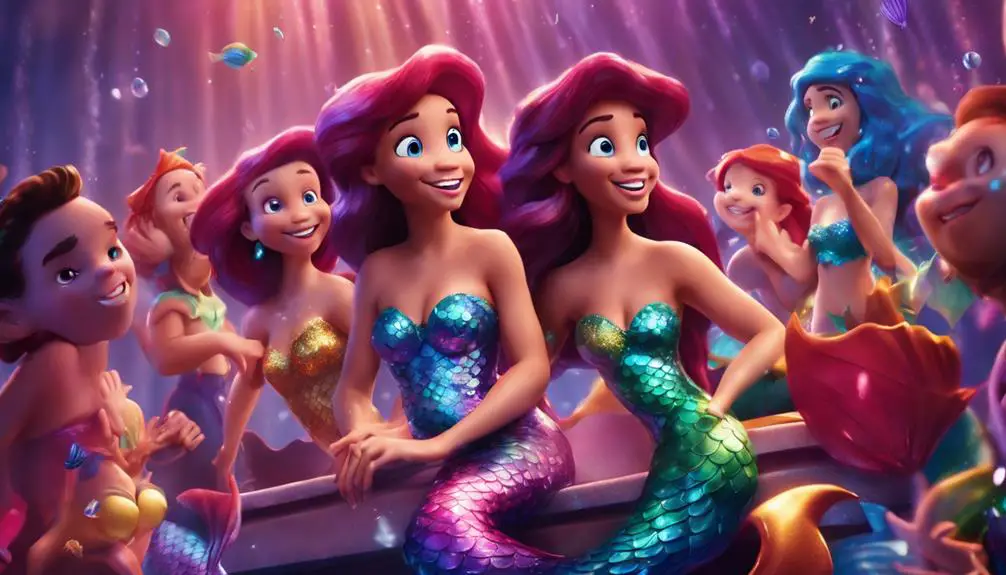 When considering Ariel's outfits, you'll notice the careful fabric choices and vibrant color palette. These elements not only enhance the character's appearance but also guarantee costume durability for various scenes throughout the production.