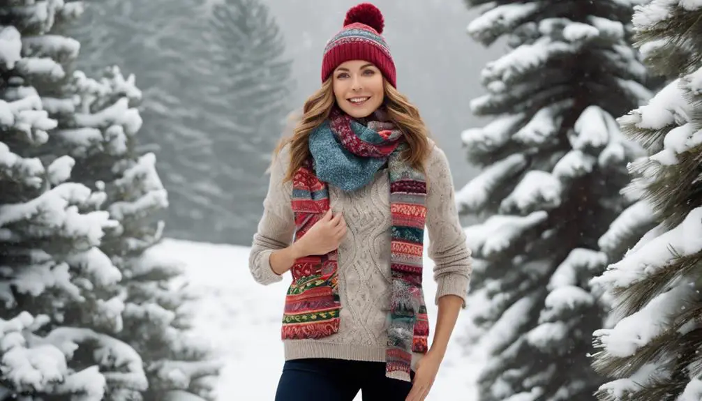 Don't forget about accessories! Statement hats and soft scarves can elevate your winter style, adding a touch of timeless charm to the cowboy boots and faux shearling pairing. This approach not only keeps you warm but also guarantees you look effortlessly put together.
