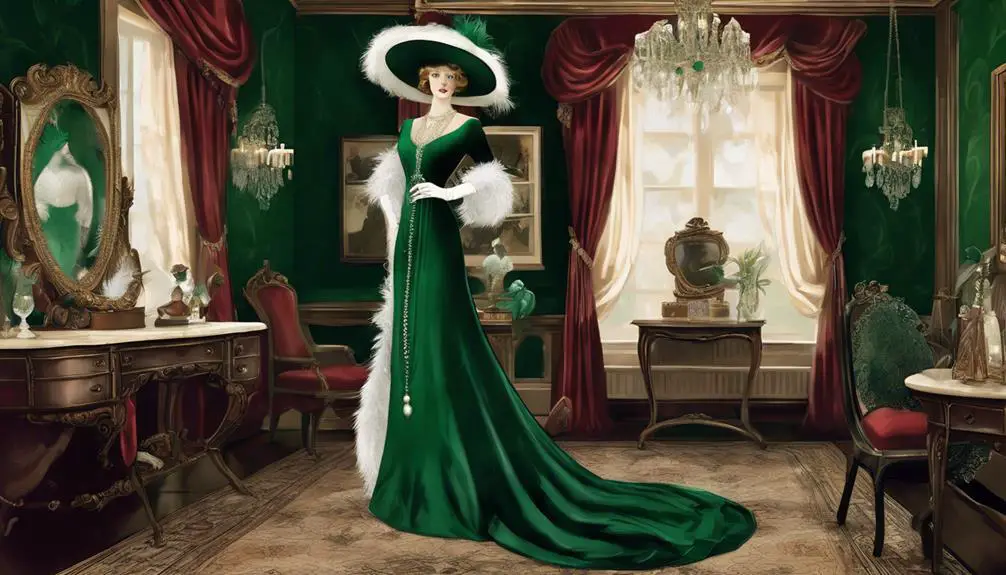 Frequently enchanting viewers, Lady Mae Loxely's wardrobe showcases a stunning array of elegant suits, evening gowns, and intricate hats that highlight her high social standing and personal struggles. Her fashion choices symbolize her character complexity, as each outfit mirrors her evolution throughout the series. As the narrative unfolds, you witness her style transform, reflecting the shifts in societal norms and trends from the Edwardian period into the vibrant 1920s.